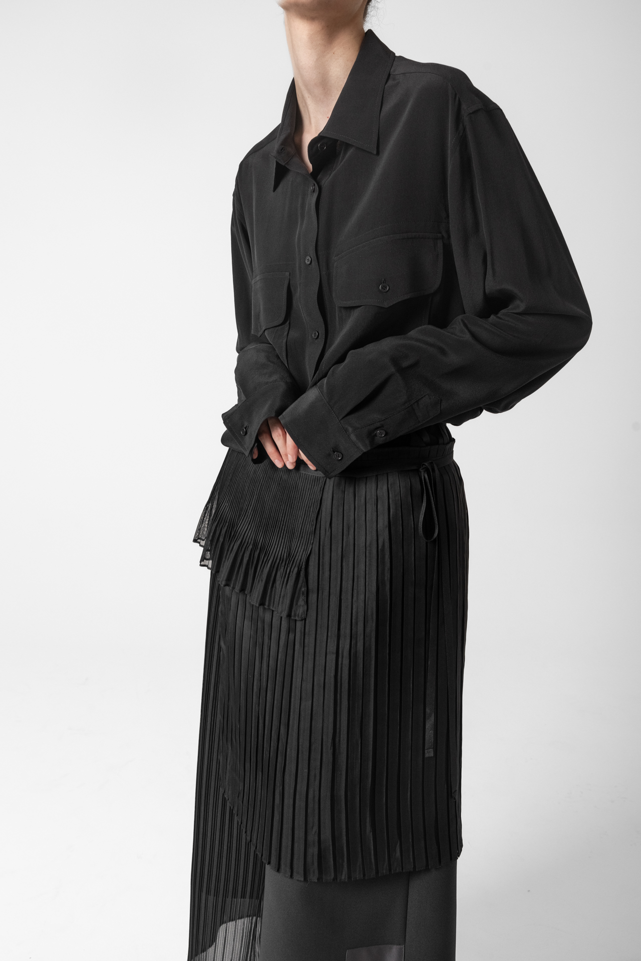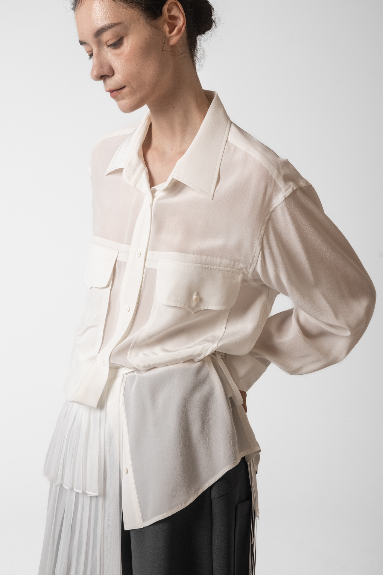 이 블라우스는 오버사이즈 실루엣으로 편안하면서도 세련된 무드를 선사합니다. 실크 특유의 은은한 광택과 부드러운 터치감이 고급스러움을 더합니다. 가슴 포켓 디테일이 포인트가 되어 모던하고 캐주얼한 감각을 동시에 표현합니다.