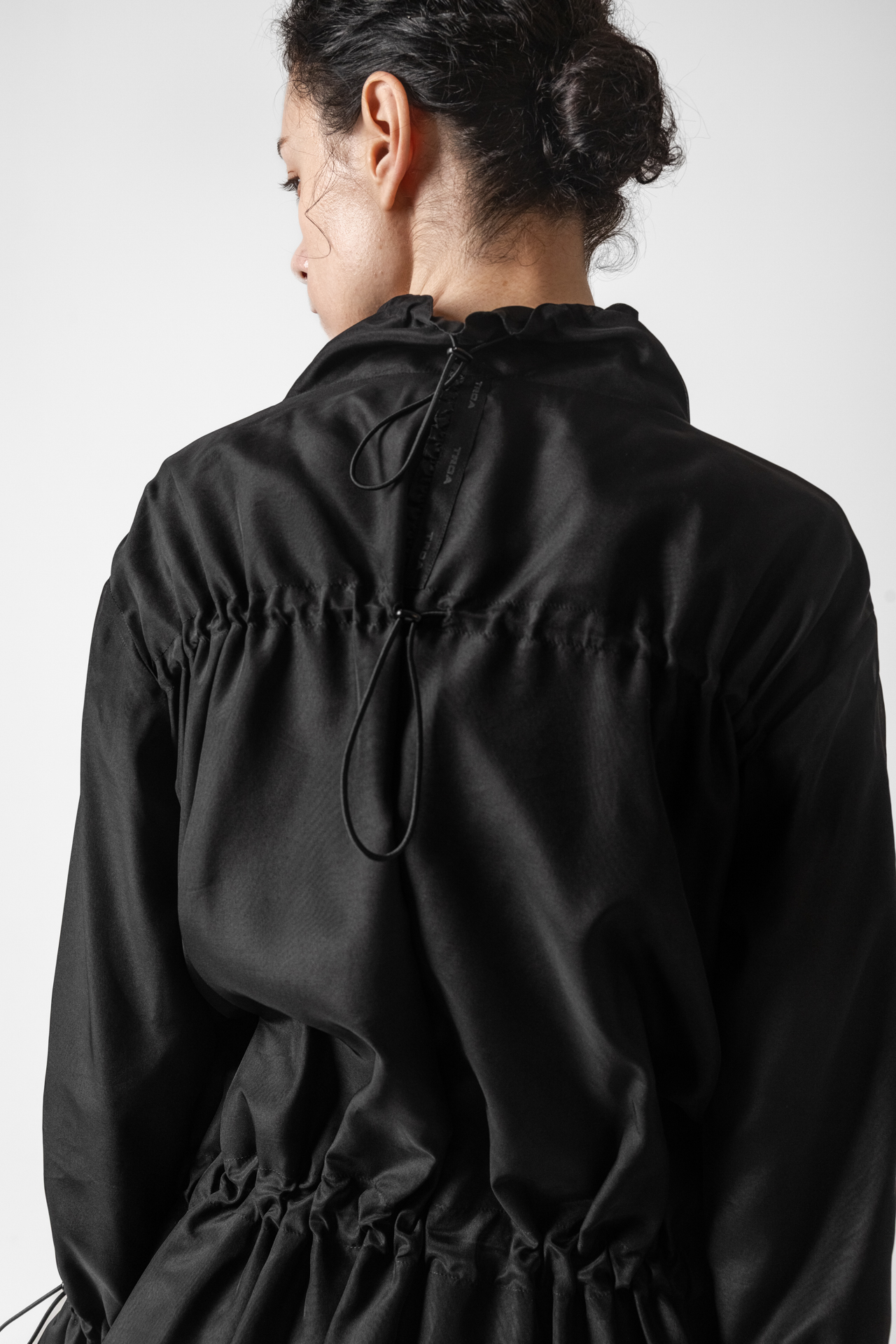 은은한 광택의 오간자 실크로 완성된 유니크한 텍스처. 스트링 디테일로 실루엣 조절이 가능해 다양한 무드 연출합니다. 가볍지만 구조적인 볼륨감으로 세련된 존재감을 더한 아우터 입니다.