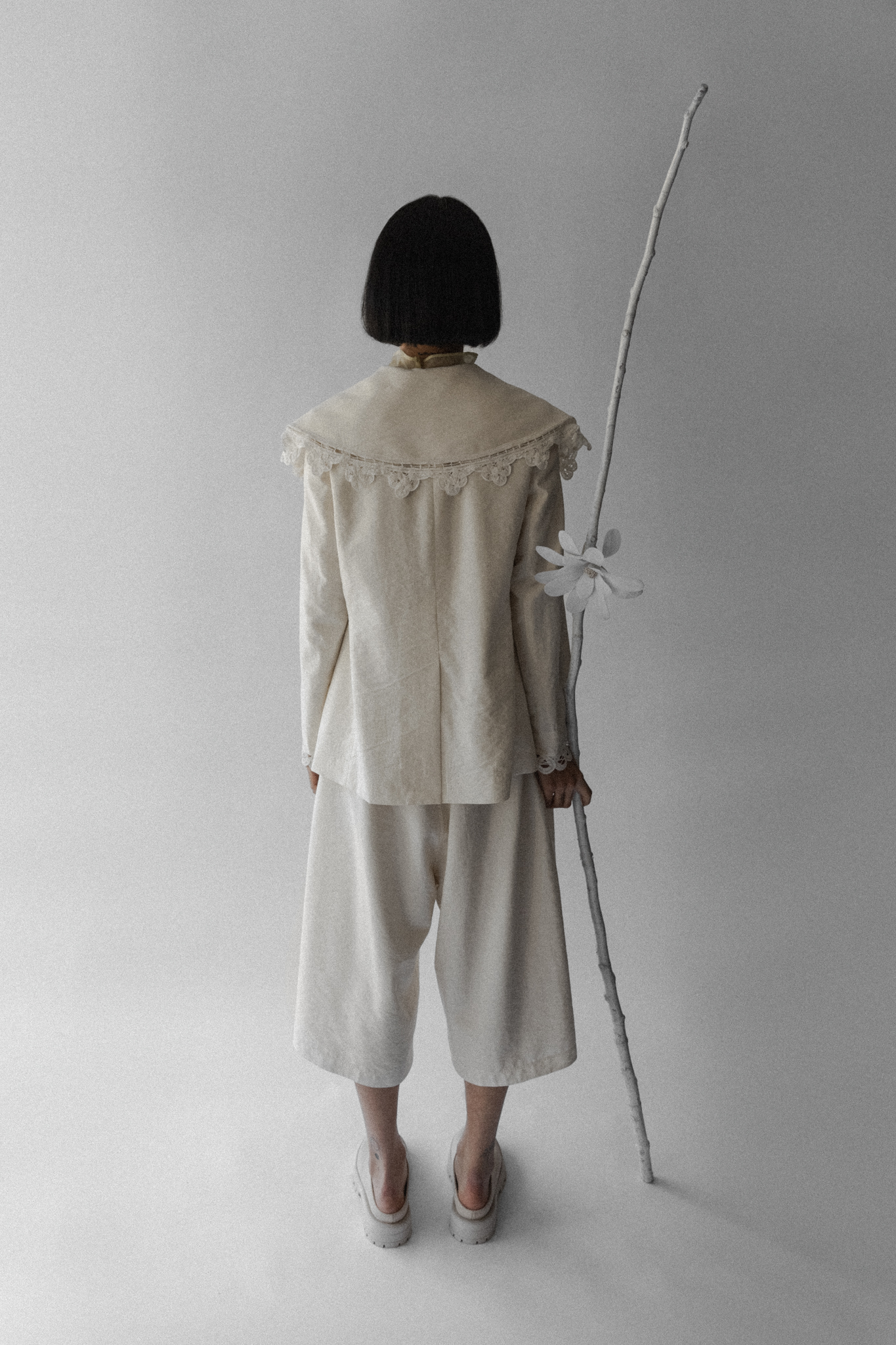 Round collar jacket with stitching details (open arms)